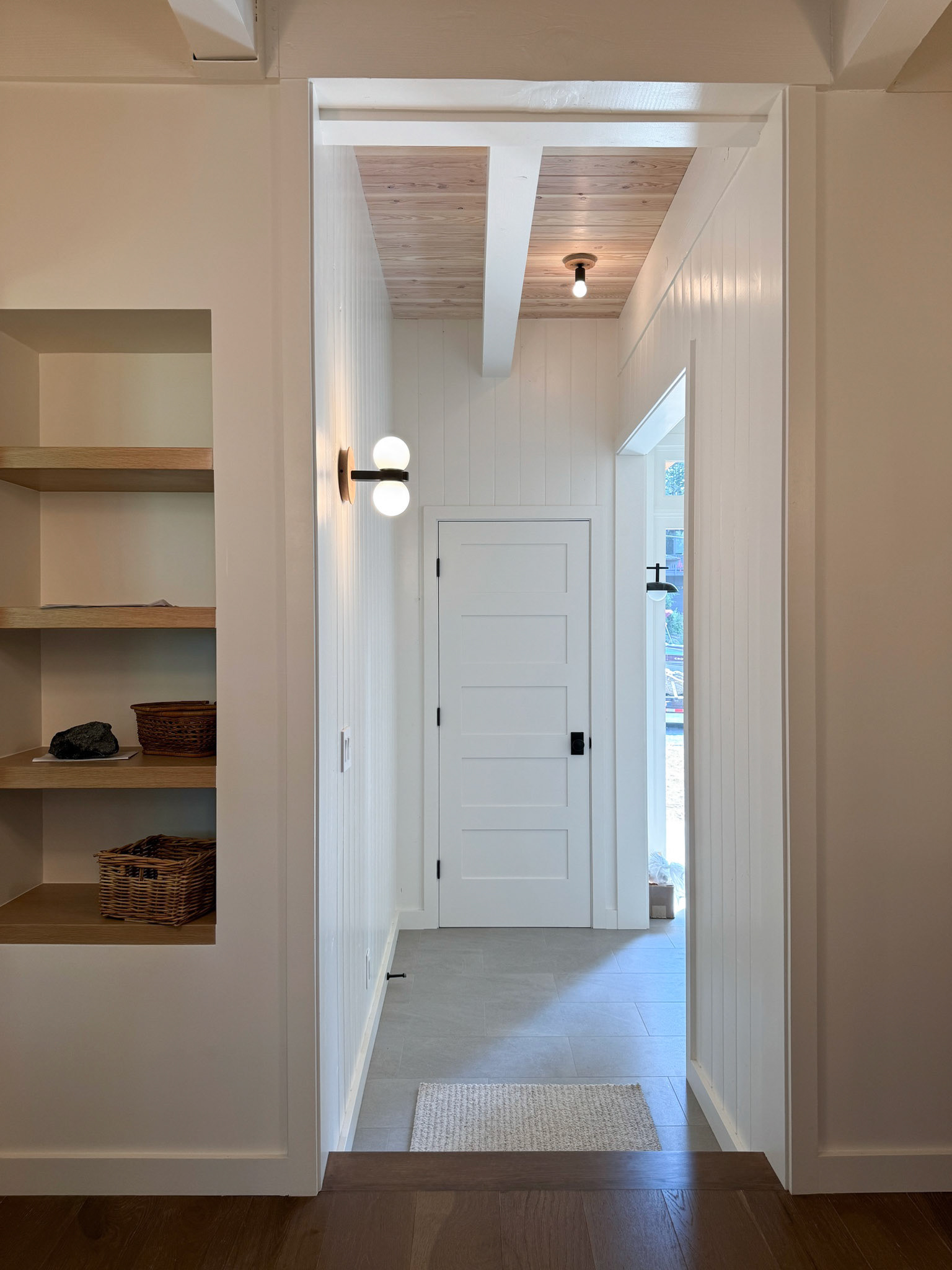 This mountain residence had previously been updated to provide for a more modern architecture. Our clients liked this style however wanted a more inviting entry, mudroom and garage as well as redesign of exterior decks, patios and landscaping. Ecosense Designs worked closely with the clients to design an addition that built-on the existing character of the home while improving the usability and access of the interior spaces located at the front of the home. and including desired added spaces. The interiors were designed by the client who has her own Interior Design firm.